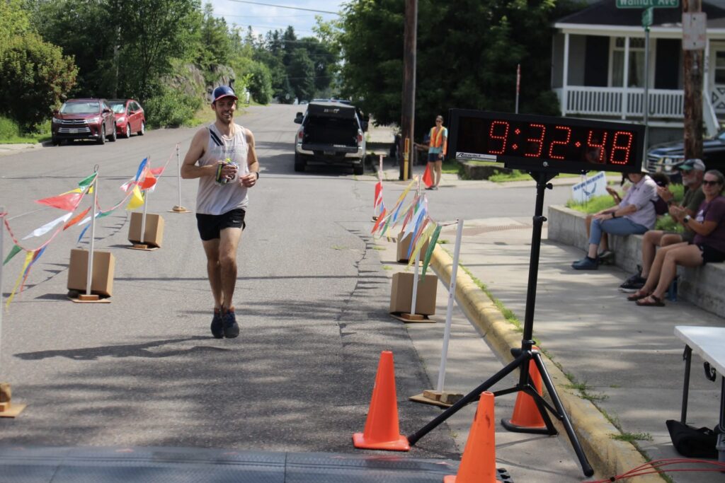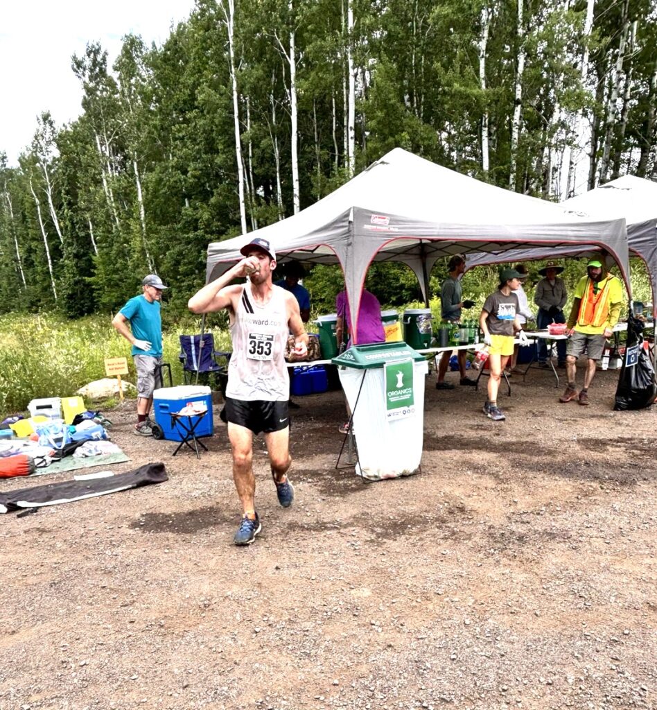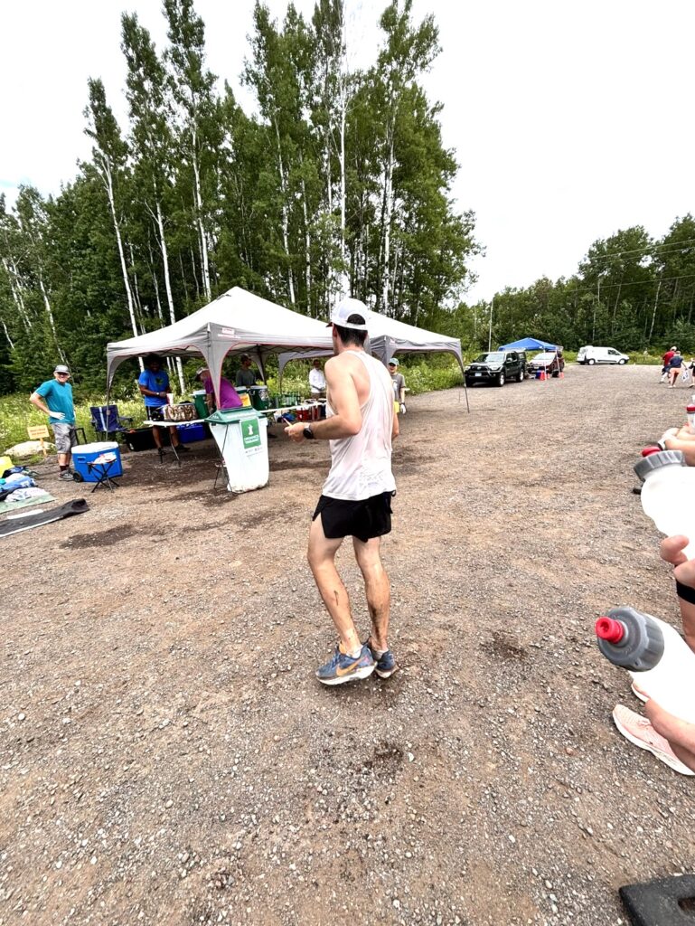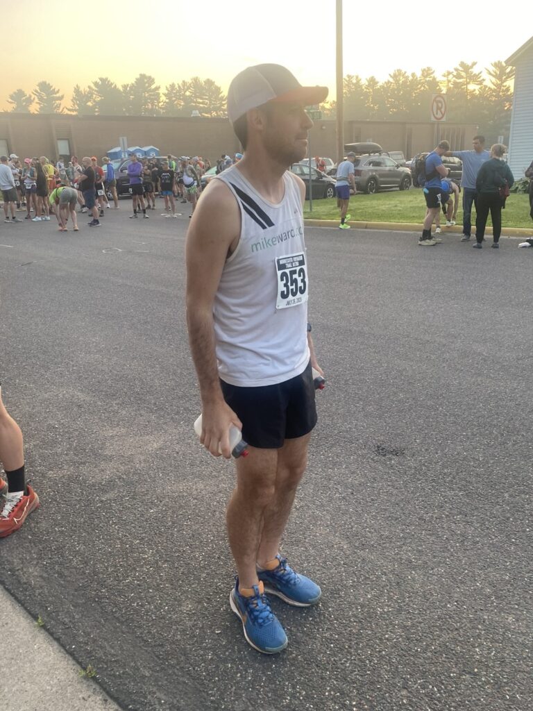 In the muggy, hazy early morning hours of Carlton, Minnesota it was all coming together for a great race. Ate breakfast, had some caffeine, found a bathroom near the finish line, found some sunscreen that I forgot (this had happened before)(thanks Lynette), my sister and brother were all set to crew me for the race and I was rearing to go. I had specifically hoped for good air quality, and hot, humid temperatures. The air quality certainly didn’t appear to be great with wildfire smoke clearly in the air, and a heat advisory was in effect for the day. Challenging conditions were upon us. The stage was set.