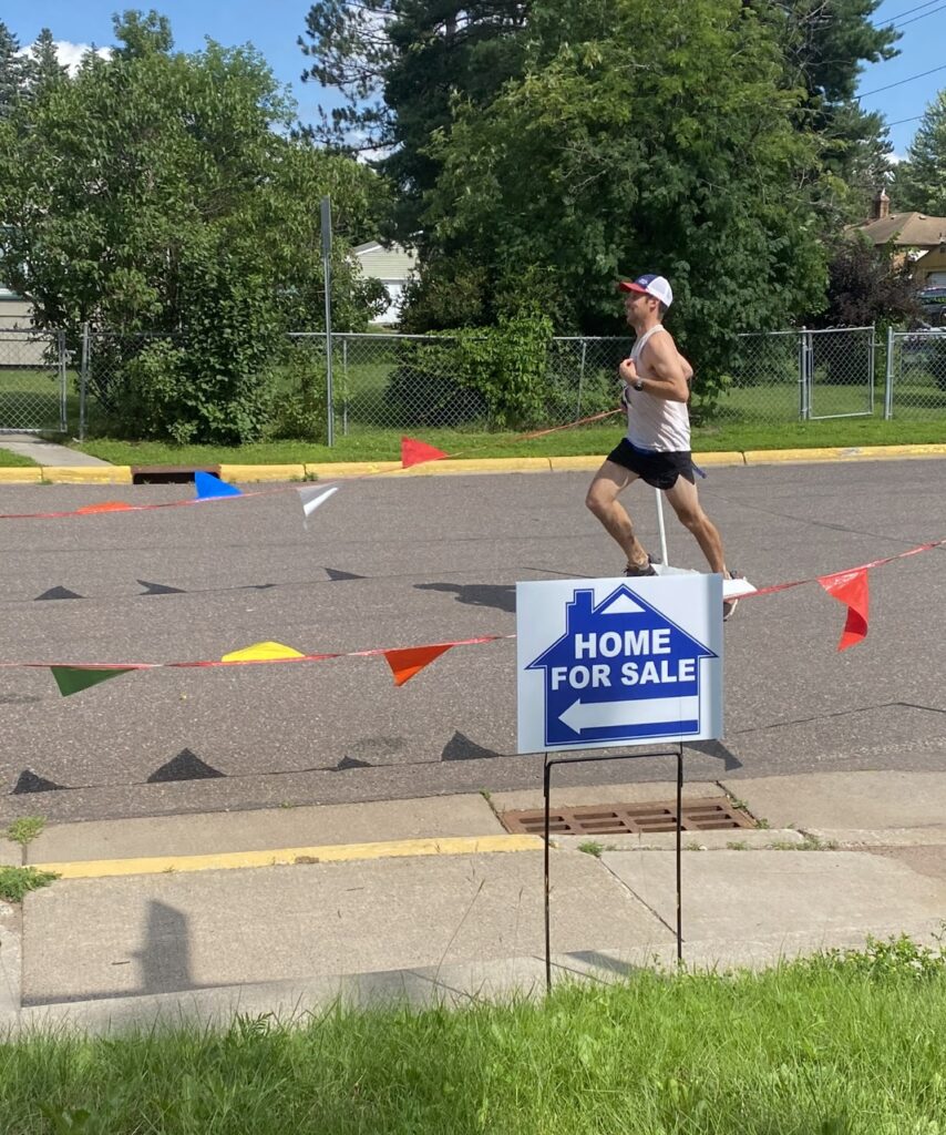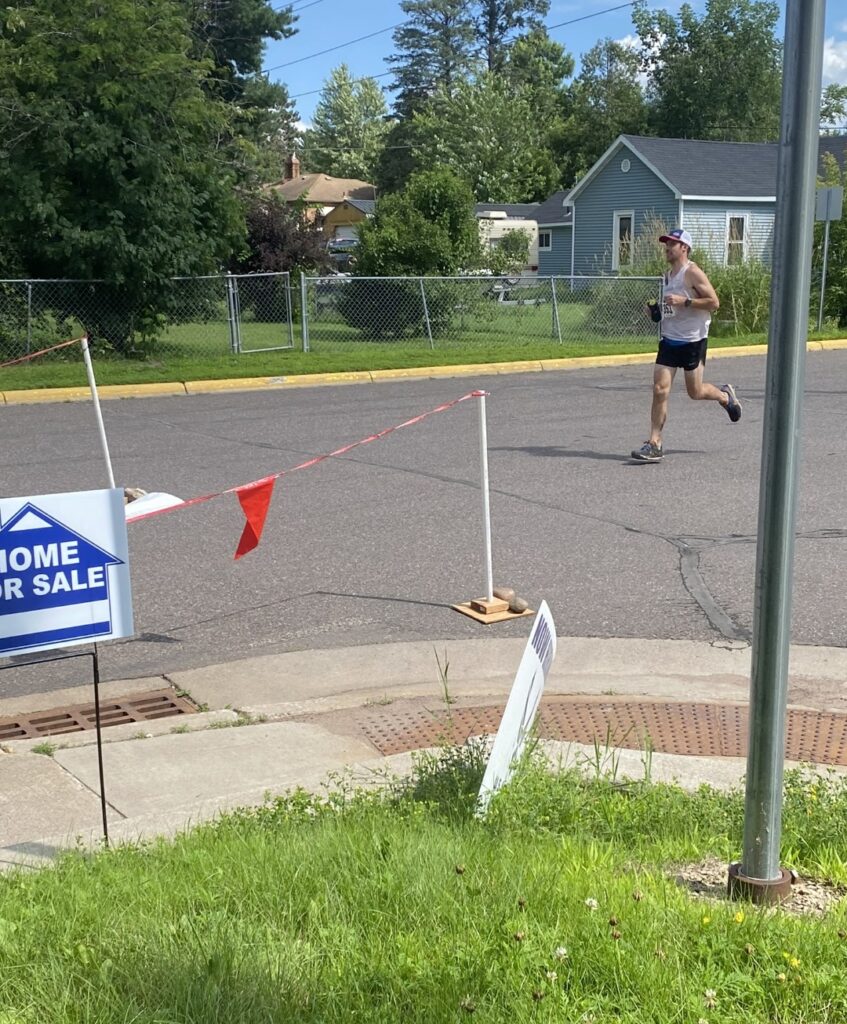 In the muggy, hazy early morning hours of Carlton, Minnesota it was all coming together for a great race. Ate breakfast, had some caffeine, found a bathroom near the finish line, found some sunscreen that I forgot (this had happened before)(thanks Lynette), my sister and brother were all set to crew me for the race and I was rearing to go. I had specifically hoped for good air quality, and hot, humid temperatures. The air quality certainly didn’t appear to be great with wildfire smoke clearly in the air, and a heat advisory was in effect for the day. Challenging conditions were upon us. The stage was set.