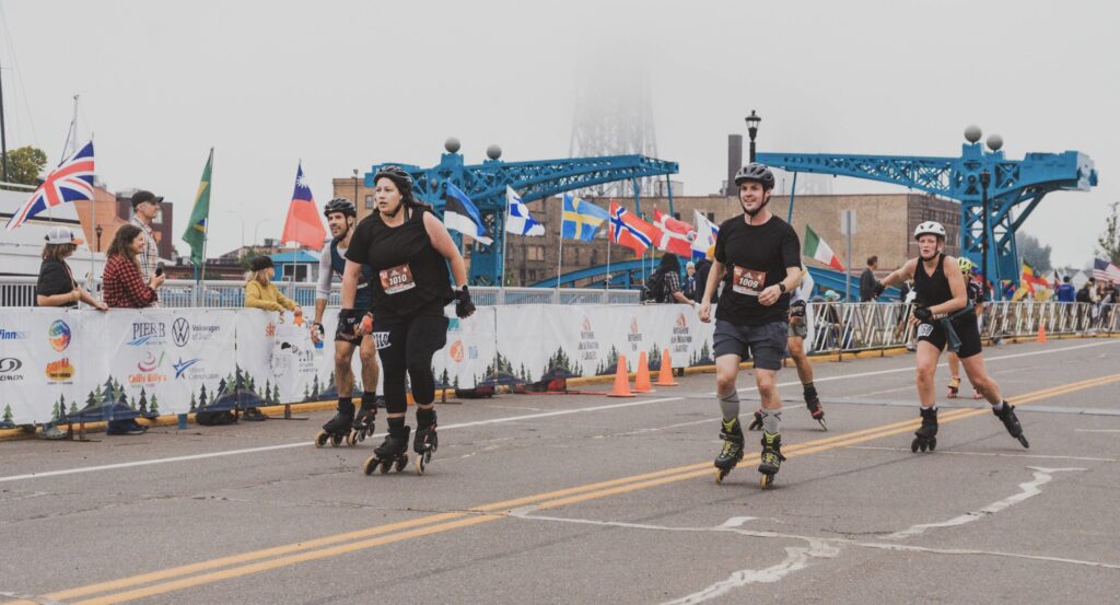 My first outing at the NorthShore Inline Marathon was a frenzied, anxious lead-up. My training was literally zero. I didn’t inline skate one time over the year, except the day before the race to make sure my skates were still operable and my feet wouldn’t wither and die in the boots. 6 days were between finishing Superior 100 and NorthShore Inline – my feet were tender having been heavily bashed for 26 hours straight. Testing my skates, I felt rarely-used muscles in my lower legs and hips recruited to stabilize my rolling body on three 125mm urethane wheels per boot. I signed up due to FOMO. My sister and brother were both registered. I had worked and volunteered for the event many, many times and in a split-second decided it would be super fun. Well, with mere hours until the race as my family arrived in Duluth, nothing was fun and I was really nervous.