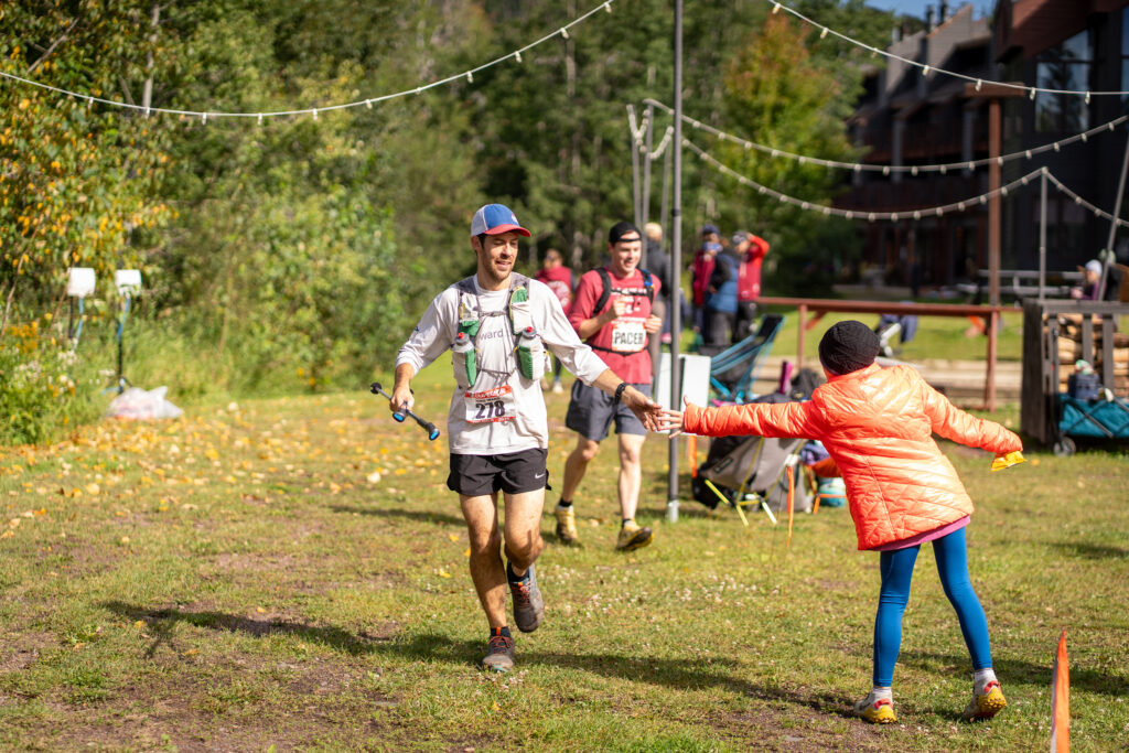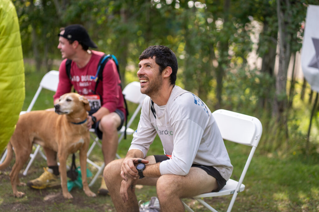 I hadn’t seen the tights guy for a while and my prediction that he’d run away from me was apparently correct. I ran just fine through the lowlands on the way up to Mystery. The worst pain was my left wrist, although my legs were totally trashed and it was just stubbornness and eagerness to get to the hotel room shower keeping my feet churning. We passed some hikers going the opposite way. My eyes were pretty fuzzy. I was so tired, I would kind of go cross-eyed. I could control my eyes enough where I wasn’t actually falling asleep, but it felt so easy to let my eyelids droop and my eyes to cross. It took abnormally long to focus. I didn’t really need to, I was robotic on the trails. I thought I saw a massive black dog with floppy ears. No way. Looking a little closer, it was a big stump. There were several moments like that getting up Mystery Mountain where my eyes were playing tricks on me. I’d see something out of the corner of my eye, a race photographer was commonly the likely candidate. After a focused look or a few steps closer I’d easily be able to tell that again, I was looking at a plant. I was so excited to finish, sit down, take a shower, ohhh I couldn’t stop thinking about how nice it’d be to take a nap. It was fully in the mid-morning by now with the sun rising high into the sky. It felt so much later than my memory of 2017 when I saw the sunrise at Moose Mountain, not Carlton Peak. Dang. Andrew was taking me in, though, and I was OK with anything that’s not a DNF. I was going to get it.