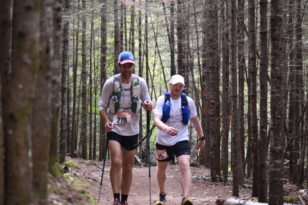 I got my bottles filled up at the first aid station and the drinks were going down very well. All systems go. After a couple hours, I had gone up nearly three miles or 45 minutes up on my pace guideline of 4 miles per hour. The field seemed to shake out a little bit after Split Rock, and I told myself out loud, and Tyler, that I had to lock in. I tried, and it was hard! But, I found myself walking a little more often and really trying to keep it easy. I still found mile splits in the 12 and 13 minute mile range, and none over 15. I just told myself to walk all the uphills and race my own race.